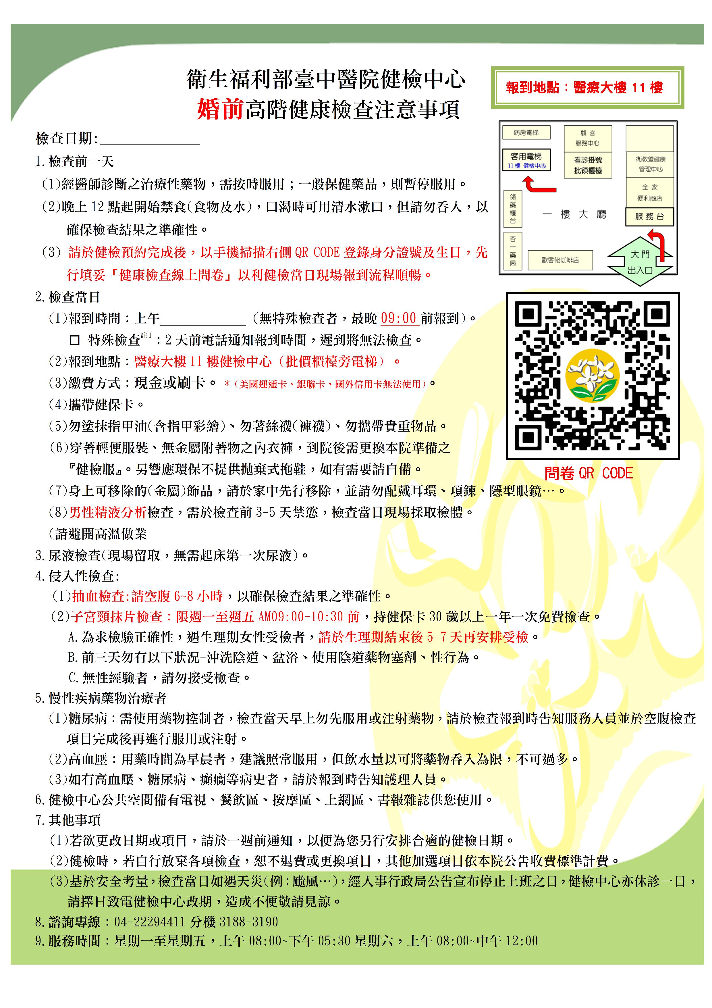 血液常規檢查:白血球、血色素、紅血球、血小板、血球容積比、平均血色素量、紅血球平均體積、平均血色素濃度